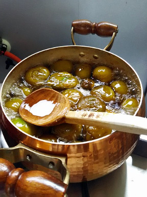 ちょっとまだ未熟な実は お砂糖を入れてクツクツ丸ごと煮て |