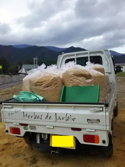 秋の恒例もみ殻取り この時期、軽トラで15分くらいのところに JAがもみ殻の集積場を設けてくれます 希望者は誰でも貰いにいけます これからの寒い時期の苗の保護や防寒には なくてはならないアイテムです |
