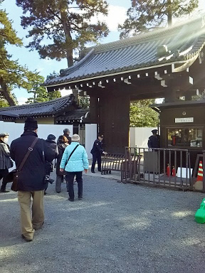 今回は事前の拝観許可が必要な 仙洞御所と桂離宮の当日券枠を手に入れるのが目的なので 京都に着いたらすぐ御所の宮内庁事務所に向かいました 運良く桂離宮はキャンセルがあって 翌日のチケットが二人分取れましたし 仙洞御所は11時から列に並んで 当日午後からのチケットを取りました |