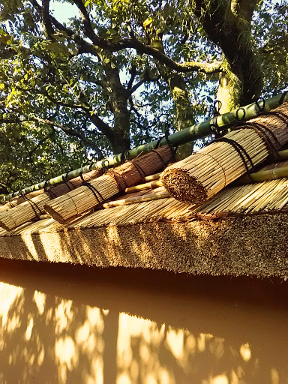 時間が来て、九時からのグループは一塊になって 係りの方の説明に従ってゾロゾロと歩きます 何度もクドいようですが、研修なので(!) やっぱりこんなものに目がいってしまいます 藁でしょうか?萱?それとも竹? そのまわりを杉皮でくるんであります
