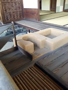 炉付きの水屋 外に突き出して作られていて ここでお料理を作ったそうです ***** イヤイヤ(=゚ω゚)ノ 峠の茶屋やら海辺の茶屋やら外でバーベキュー(?)やら 行き着くところ貴族も、素朴な田舎暮らしに癒しを求めたのでしょうか そういえばマリーアントワネットも ベルサイユ宮殿にプチトリアノンを作ったんだったナー |