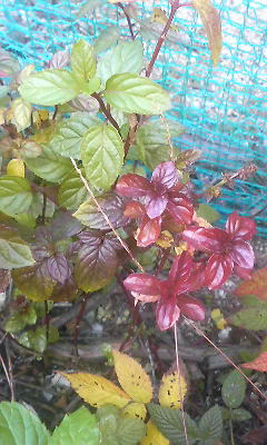 ミントも紅葉する? 今シーズン最後のミント水を作ろうと ミント畑を覗いてみたら・・ さすがにミントはお仕舞いモード 紅く色付いてる葉っぱもありました |