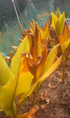 ウコンも紅葉 これだけ葉っぱが黄色くなったら、そろそろ堀りどき |