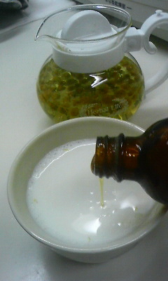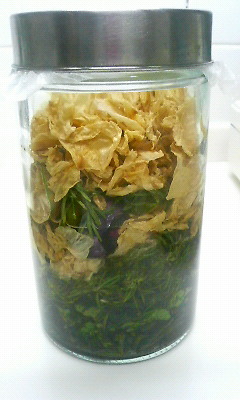 ローズマリーをぎっしり詰め込んで、2週間したら 新しいのと替えてまた2週間、翡翠色のローズマリー オイルが出来上がります 若さを保つといわれるローズマリーのエキスたっぷりの 石鹸やクリームを作りましょう! |