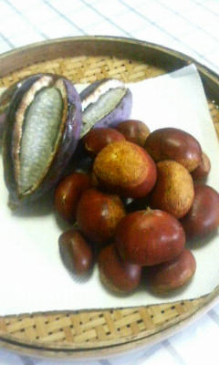 近所のクレソンさんから今ごろになるといつも アケビと栗が篭いっぱい届けられます それにしてもこのアケビ 種はなんとかならないものでしょうか?(種なしアケビとか?) |
