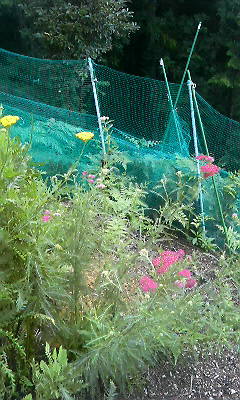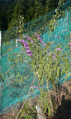猿の仕業?と思い、低い網で覆ってみましたが それでもやられてしまいます たぶんイタチか、ウサギ? イタチなら臭い匂いに弱いと聞いて 木酢液を撒き、ナフタリンも散らしてみましたら 以後は出没しなくなりました ヤレヤレ 山の畑の天敵は 鹿や猿やイノシシや熊(キャー!)・・だけではなく 小動物たちも・・ (少しはあげるから、ちょっとは遠慮してネ) |