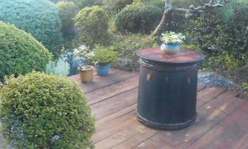 納屋で見付けた味噌墫! 逆さまにして盖をのせたら こんなカンジに 掘り出し物でしょ? |