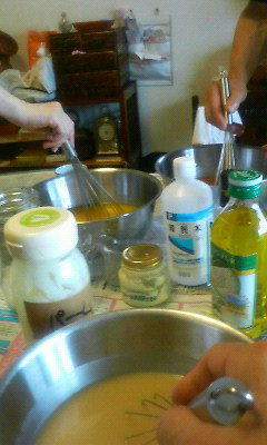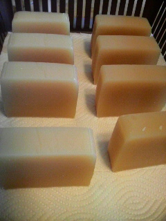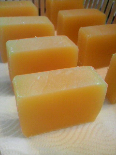 切り分けたあとはこのまま約二か月熟成させます 今回は他にも、薔薇石鹸、あずき石鹸、そして シアバターたっぷりの(熟女好み?)MARIKO石鹸 が新春デビューしました |