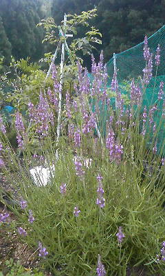 野菜ではありませんが、家で挿していたラベンダーと ジャスミン、ローズマリーが根を出して しっかりした苗に育ちましたので、苗床に植え付けました |