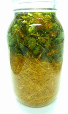 ヨーチン、アカチンはその昔どこの家の薬箱にも ありましたものね ハーブをウオッカや焼酎に浸けてハーブの成分を抽出 させたものがチンキ(7/20のブログにもあります) ハーブティーに溶け出すのはハーブの水溶成分だけですが チンキにはハーブの脂溶性の成分も溶け出しています それなら!手っ取り早く緑茶や紅茶やコーヒーにだって 薬効のかたまり、チンキを垂らせば効果満点じゃないの? そういうわけで、夏バテ解消のためのマイブームはチンキ 特にエキナセアは、免疫力アップに効果があるとして 最近注目を集めているハーブ 疲れを感じた時に飲むようにしています 煎じないといけないドクダミは、チンキにすれば 手軽なので頻繁に飲んでます ・・が、少量と言えどもチンキはアルコール度数が 40%以上のウオッカに浸けたもの 飲み過ぎないことと、運転する前には控えて頂くように お気をつけて |