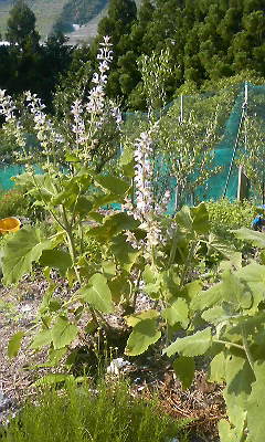 今夏のこの猛暑!皆さま如何お過ごしでしたか? ジャルダンの植物たちの様子をみると、 酷暑の夏もどうやら終息に向っているようです 夏の太陽を連日浴びてすっかり木質化しているバジルは なかなか存在感のある花を咲かせています |