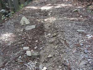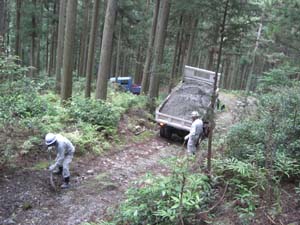 発展途上のジャルダンの整備には、なかなか過酷な 仕事がいっぱい! 梅雨末期の集中豪雨で、6月に直したはずの道路に 大きな亀裂が! 車のタイヤがはまってしまうような深い穴に砂利を詰めて 上からセメントを塗りました また台風もやってくるでしょうし・・焼け石に水かもしれませんが・・ |