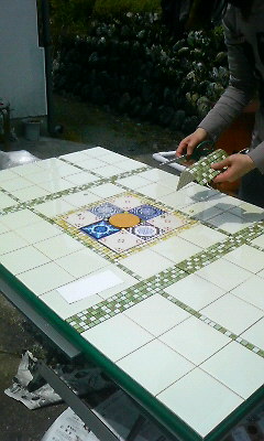 で、タイルはあきらめて絵を描くことに (とりあえず別の机の上に乗せています) |