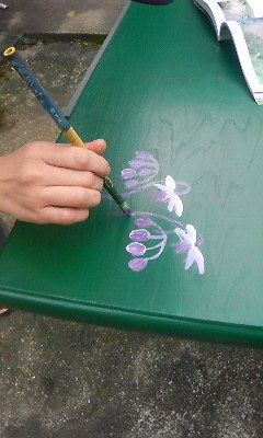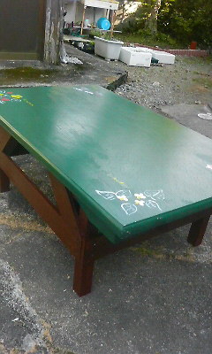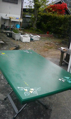 スチールの足を付けて、座卓に戸外用の ペンキを塗りました |
