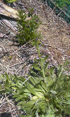 アルカネットは可憐そのもの 根を乾燥させてから油やアルコールにまぜると 赤い染料ができるとか・・ (写真でははっきり分かりませんが 紫色の小さな花が咲いています) |