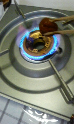 う〜ん・・イマイチ・・ 火にくべてしまうと、香り成分も燃えてしまうのでしょうか? ほうじ茶を作るときのように、火の上に焙烙か鉄板でも 置いて、炙るといいのかもしれません これは宿題です |