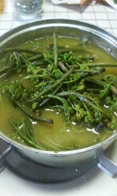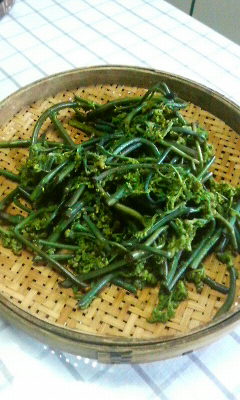 緑鮮やかに出来上がり 胡麻和えが美味 |