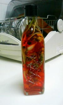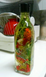 ニンニク、唐辛子、粒胡椒、ナスタチウムの種も入れました |