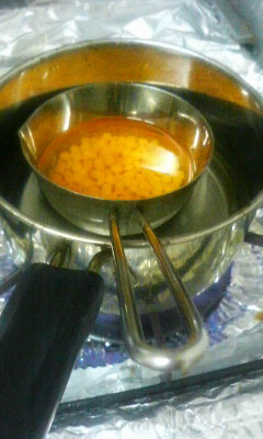 蜜ろう(10g)をステンレスかホーローの鍋に入れて |