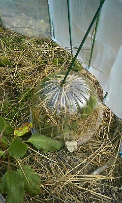 超寒がりのローズゼラニウムにはすっぽりとキャップを