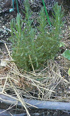 ラベンダーに藁の襟巻きをしてやりました