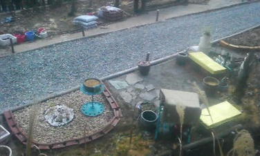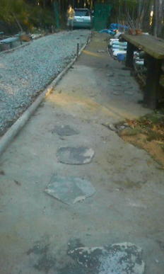 入口から砂利道に沿って作っている粘土入り舗装の 「土の道」もだいぶ長くなりましたが、粘土の割合が その都度アバウトで・・微妙に色のトーンが違っています 「手作りの味」ということに・・ まだまだ「ルミノ」は工事中 土の小山や資材やらバケツやらが散らばって 通りがかった方は首を傾げて見て行かれるみたいです |
