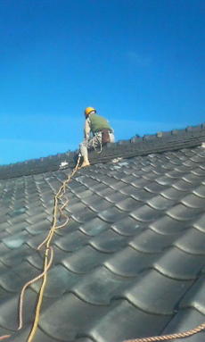 山の古家の屋根には取っても取ってもペンペン草が! どこからか飛んできた種が 瓦の隙間に根を下ろすのでしょうか 一方の軒先にくくりつけてから、屋根を越えて 向こう側にほおり上げて垂らしておいた命綱を頼りに 慎重に漆喰で塗り固める作業をします こうしておいても、また来年になればどこからか 芽を出してくるでしょう 恐るべし、雑草の力! ![]() |