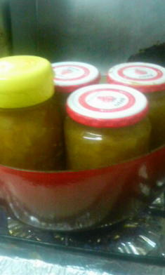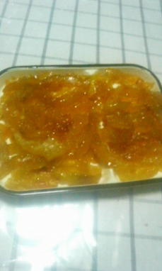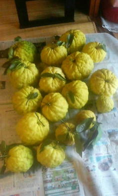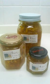 砂糖菓子の残りの実と他の鬼柚子でジャムを作りました 保存がきくようにと、ビンに詰めて湯煎にかけましたが たぶんあっという間に食べてしまうでしょう |