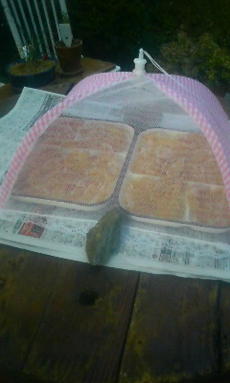 結果は! プロが見れば嘆かれること請け合い! ひび割れやら塗りむらやら 恐る恐る乗ってみたら、他は乾いているのに なんかふにゃっとする部分があったり この道、重さ制限が必要かも・・ |