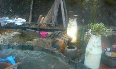 いつの間にか 製作中の手作りの庭「ルミノガーデン」に必要な 花壇の土の山があちこちに 堆肥を入れてビニールシートをかけて ただ今「熟成中」 |