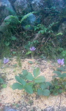 サフラン 昨年はジャルダンで、小動物にすっかり食べられて しまったので、今年は家の庭先に植えました 三本の雌しべの香りのいいこと! |