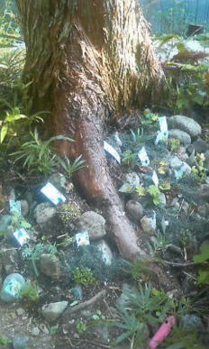 ベンケイソウなどの、乾燥を好む山野草を 石垣の縁の、もともと石ころだらけの木の根っこに 砂を敷いて植えてみました ロックガーデンの良さが今一つ理解できませんが・・ |