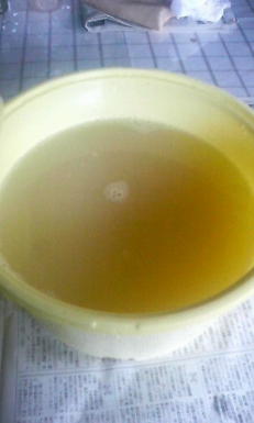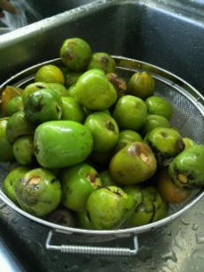 外テーブルに柿渋を塗って以来(2011年5月20日ブログ) 柿渋にハマってしまった私 渋柿を下さる方があったので 自家製柿渋を作ってみました |