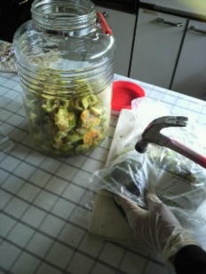 潰れたら、ヒタヒタの水を加えてガラス瓶に入れて 冷暗所に5日 |