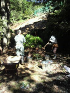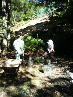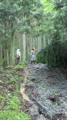 ブログの間隔がちょっと空いておりました間に・・ 実はセッセ セッセと崩落土を下に(バケツで!) 運んでおりました アリの一徹(?)、土砂の山を二つ三つと崩して ついにあと一つの山を崩せば元々あった道に通じる というところまできました(涙) 台風直後の頃 ↓ ![]() |