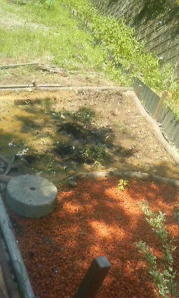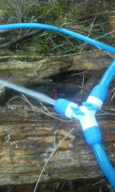 何しろ何十年も埋もれていたホースは、 中に砂利が詰まっていて、 開通させるのはホネが折れましたが、 振ってみたり地面に打ち付けたり・・ やっと水が通りましたヤッター! |