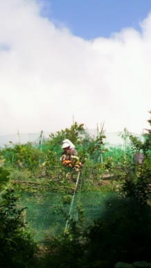 仕上げは、何と言っても、か・き・し・ぶ ←柿渋を塗るAの手 |