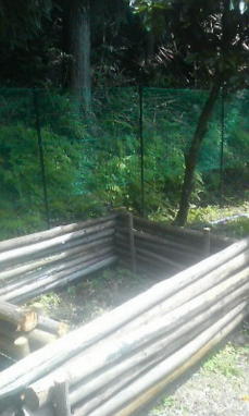 ジャルダンの縁の下の力持ち ジャルダン人Bは寒くても忙しい! ギラギラ陽が照りつけてくる前にやっておくことはいっぱい! 下のジャルダンと中腹のジャルダンの間の鹿囲いに ゲートを開通させました これで往き来がスムーズに |