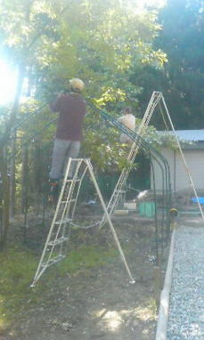 下方1/4くらいはホースが足りなかったので、 ブルーの放水ホースを接いで間に合わせました |