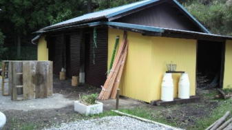 移動して使える小型の発電機を手に入れました これで、まだ電気の来ていない「ルミノ」の枝はらいが 電動バリカンで楽チンにできます (手押し車の荷台に板で台をのせたのがちょっと自慢) |