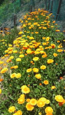 砂利道を入って中程右側に 花壇を作っています 前回ブログでご紹介した Bの父が端整して作っていた 花壇の縁取りの瓦の残りが 沢山あったのをもらってきて ここの花壇も父流に |