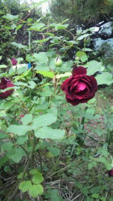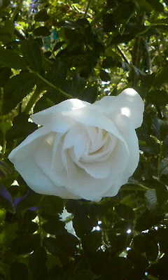 白い薔薇フランシス・クーベルトのとげとげの枝には 新芽がいっぱい よかった・・(ホッ!) |