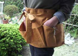 なんかの作業の途中で、ハサミや マジックインキやセロテープや・・が 必要になったり、携帯やティッシュやマスクを 家の中に取りに行かなくても済むような 「作業効率アップエプロン」を試作中です。 収穫物やゴミまでも(?)入れられるように、 大きくまん中にポケットを開けましたが、 ポケットが大きすぎて、かがんだ拍子に 中身がポロポロ・・ 結局まん中に仕切りを入れることになって、有袋類ポケット案(?)はボツに このエプロン、 今後は益々進化を遂げることになって行く?ハズです ご期待ください! |