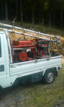 発電機にミニキャタピラー、てん圧機を満載した 軽トラックごと頂戴してしまいました! こんなことってあるんですね! (もう二度目はないと思います) |