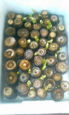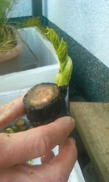 昨年末から伏せておいたタラの木が芽吹いてきました |