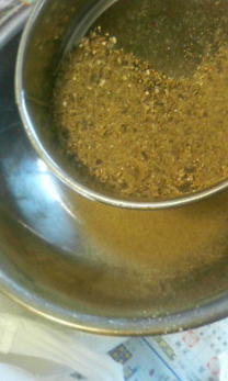 粉にしたものをふるいにかけます 細粒になるまで何度もふるいます 気をつけて作業をしても、部屋中、身体中に 煮干しの粉が舞い散ります(最大のお手間・・) |
