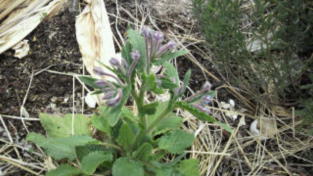 ボリジ 葉っぱは厚く青々して この寒いのに 花の蕾まで! |