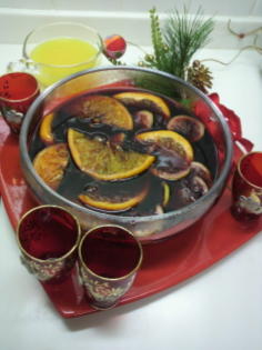 お屠蘇がわりにホットスパイスワインを作りました オレンジジュースで薄めるとグイグイ飲めてしまうので ゲコには注意が・・ でも、甘くてスパイシーで美味しい! |