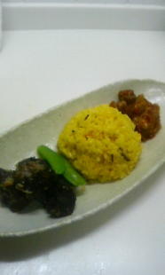 昨年のサフランは、これからという大事なときに なにやら小動物に侵入されて大打撃を受けました やっと難を逃れたひとつまみのサフランを使って サフランライスを作りました お肉の赤ワイン煮とチリコンカンを付け合わせて サフランライスに混ぜ合わせながら頂くことにしました |