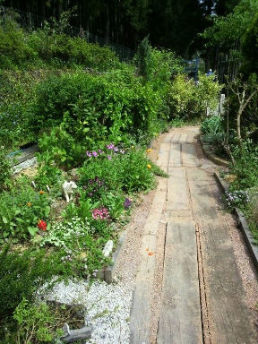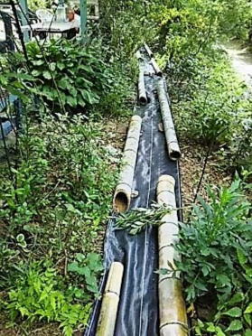 年々草取りが億劫になって 今年はついに遊歩道に 草避けのシートを 敷いてしまいました 拾ってきてためておいた竹が 重しの役に立ってよかった! 秋風が立つまで道もおやすみ |